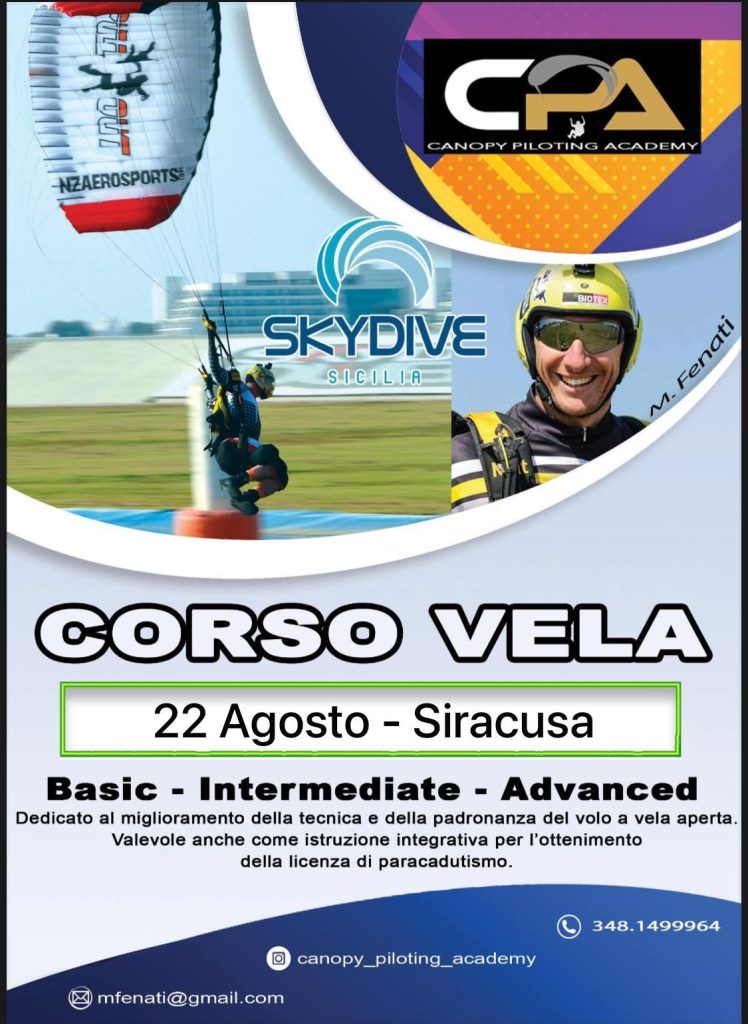 Canopy Piloting Course con Mattia Fenati !! 21e 22 AGOSTO-2025 >> SkydiveSicilia drop zone !!